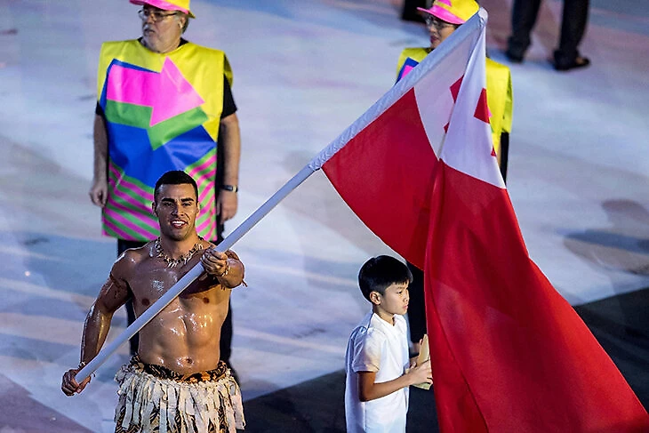 На летней Олимпиаде в Токио на открытии был похожий перфоманс: тхаэквондист Пита Тауфатофуа из Тонга вышел в кокосовом масле.