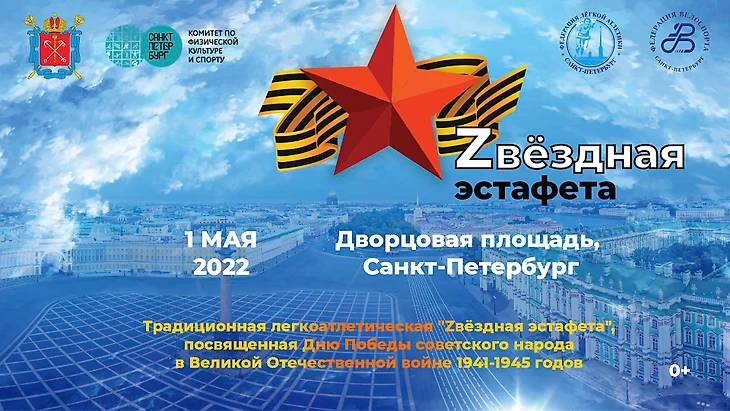 1 мая на Дворцовой площади стартуют сразу две традиционные петербургские легкоатлетические эстафеты: Майская эстафета «Открытие летнего спортивного сезона» и «Звездная эстафета», посвященные 77-й годовщине Победы в Великой Отечественной войне.