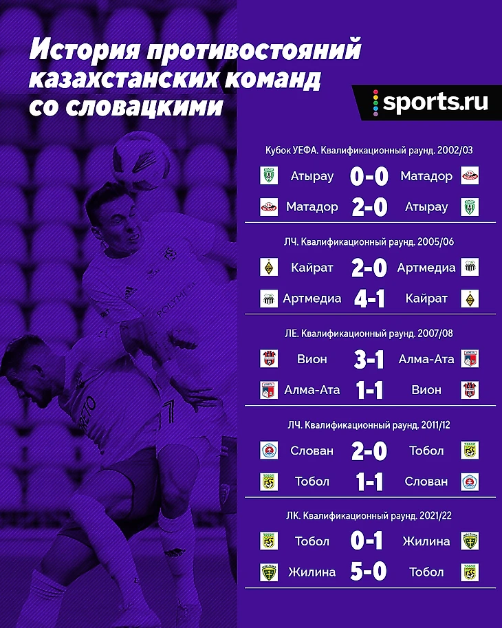 За всю историю еврокубков казахстанские команды пересекались со словацкими всего 5 раз. К сожалению, во всех случаях вперед проходили именно клубы из Словакии.