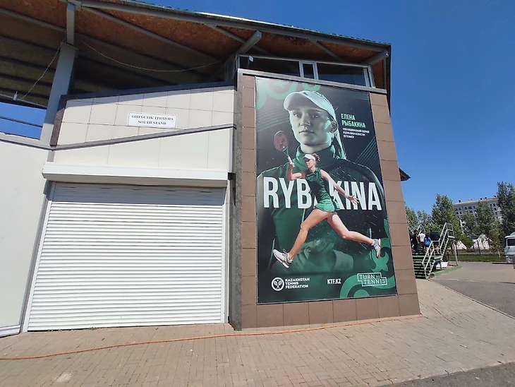 Интересно, что большой баннер Рыбакиной встречает гостей теннисного центра перед главным кортом, где и проходили финалы. В последние дни турнира был заметен интерес зрителей, что вполне логично. После успеха Рыбакиной о теннисе заговорили на всех уровнях, а крупный турнир, проходящий буквально в центральном парке, отличный повод приобщиться к этому виду спорта.