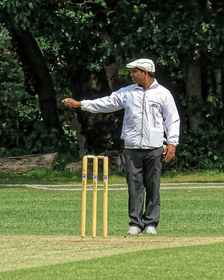 Во время матча на поле находятся два судьи. Один из них стоит за воротами, а другой занимает позицию, с которой он наблюдает за игроком с битой. Решения принимаются в основном судьей-вратарем, а второй судья помогает ему. Кроме того, может присутствовать третий судья, анализирующий телевизионные повторы, и два финальных судьи, выставляющие очки (оверы) и ведущие статистику.