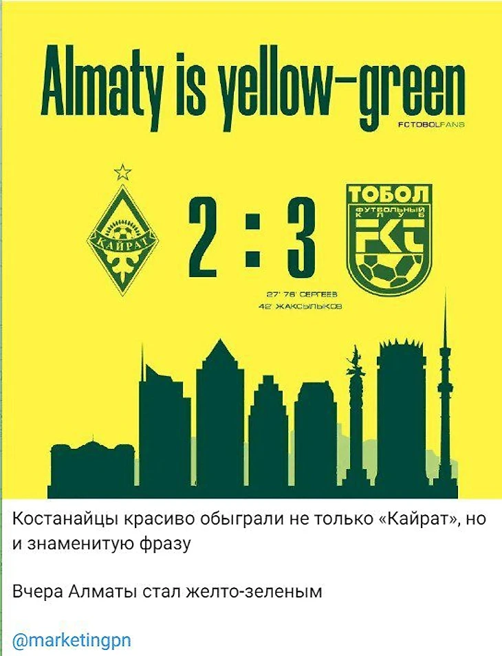 После болельщики костанайцев обыграла знаменитую фразу алматинского клуба.