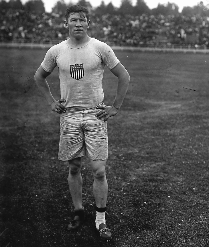 На заре олимпийского движения (современного) было множество удивительных историй. Героем одной из них стал простой парень Джим Торп. Он родился в резервации в 1888 году, в племени сауков и фоксов, учился в индейской школе и получил при рождении имя Уа-То-Хак или Светлый путь. В раннем возрасте умирает его брат-близнец, а когда Уа-То-Хак достиг возраста 14 лет, он лишается матери. В 1904 году наш герой поступает в Индейскую промышленную школу в Карлейсле, Пенсильвания, но вскоре умирает еще и отец Джима, и наш герой вынужден бросить обучение и пойти работать. Кстати, Джимом наш Светлый путь стал не сразу. В свидетельстве о рождении у него было написано Джакобус Франсискус Торп, что конечно лучше звучит для белого американского уха, чем Уа-То-Хак, но всё же через чур громоздко, поэтому Джакобус Франсискус становится просто Джимом.