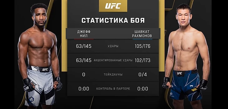 Рахмонов одержал свою семнадцатую подряд победу: к слову, Джефф Нил еще никогда не проигрывал сабмишеном в UFC.
