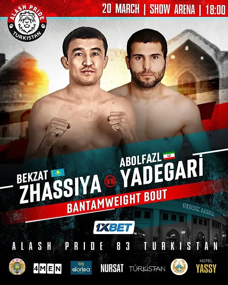 Чемпион мира по ММА и комбат джиу-джитсу Бекзат Жасия готовится к своему третьему бою в профи против иранца Адолфазла Ядегари. Поединок пройдет в рамках турнира Alash Pride 20 марта в Туркестане.