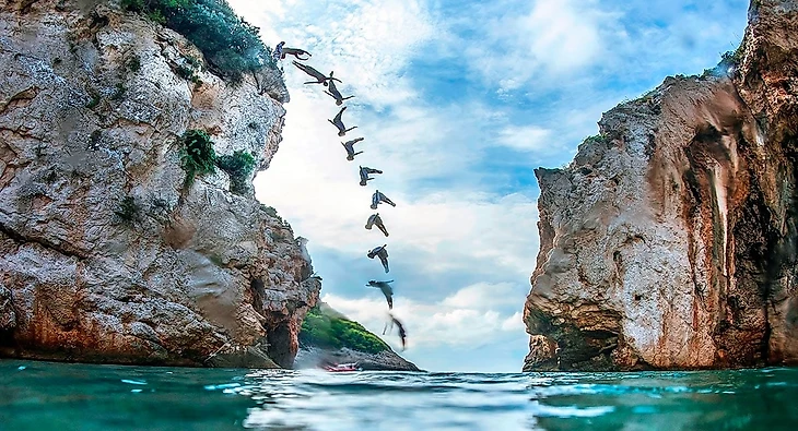 Прыжки в воду с небольшой вышки: Этот вид спорта, известный как "Cliff Diving", представляет собой прыжки с небольшой высоты в воду. Участники могут прыгать с вышек, скал или других высотных объектов. Этот вид спорта может быть очень опасным, но также является впечатляющим»