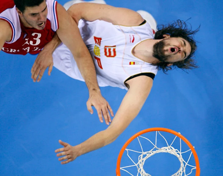Легкая победа испанской сборной над хорватами по отсутствию особого напряжения и какой-то заведомой обреченности в действиях последних была совсем не похожа на четвертьфинальное сражение. На прошлогоднем европейском форуме «красная фурия» была посрамлена разыгравшимися хорватами на групповой стадии (85:84), а потому и от этого противостояния ожидали очень многого. «У них есть пять или шесть игроков НБА, но мы уже побеждали их, а потому сможем сделать это снова: тем более, что играют они неровно», � пугал пиренейцев перед стартом Марко Попович. Но его товарищам так и не удалось дать бой. Ослабленные потерей Поповича, повредившего сухожилие, балканцы явно растеряли атакующий потенциал и уже после первой четверти уступали с двузначной разницей 11:22. В результате усилий Марко Банича и играющего с небольшой травмой Зорана Планинича не хватило даже для того, чтобы разменять 60 очков.