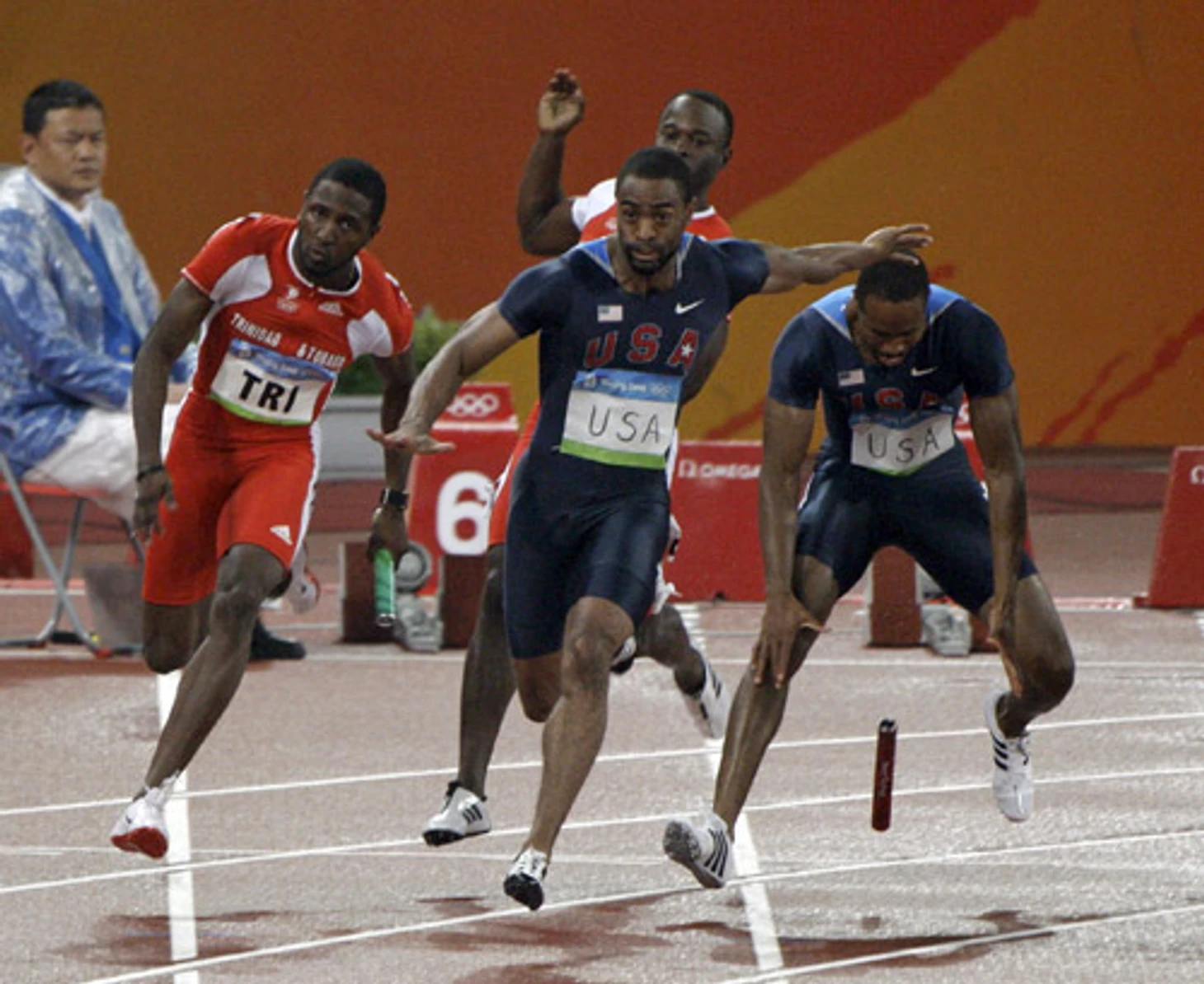 Мужская эстафета 4x100 метров. Тайсон Гэй теряет палочку и превращается в главного неудачника Игр. Без комментариев.