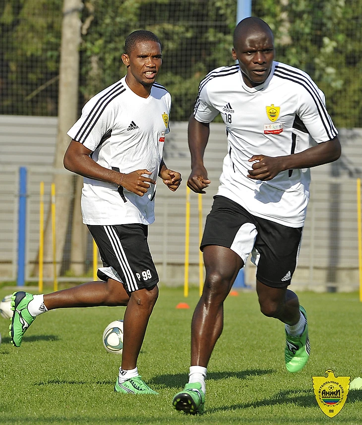 Samuel Eto’o and his fellow Cameroonian teammate Benoit Angbwa