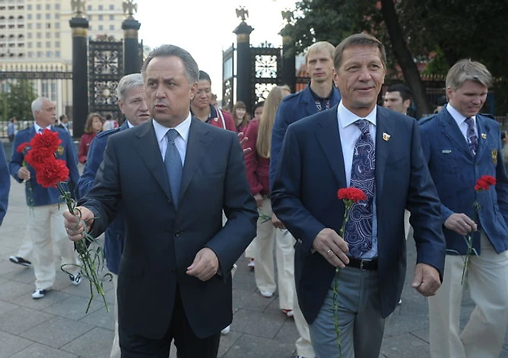 Виталий Мутко ходил гоголем возле автобусов еще до торжественного возложения цветов и подходил то к гребцам, то к стрелкам. К боксерам, впрочем, не совался.