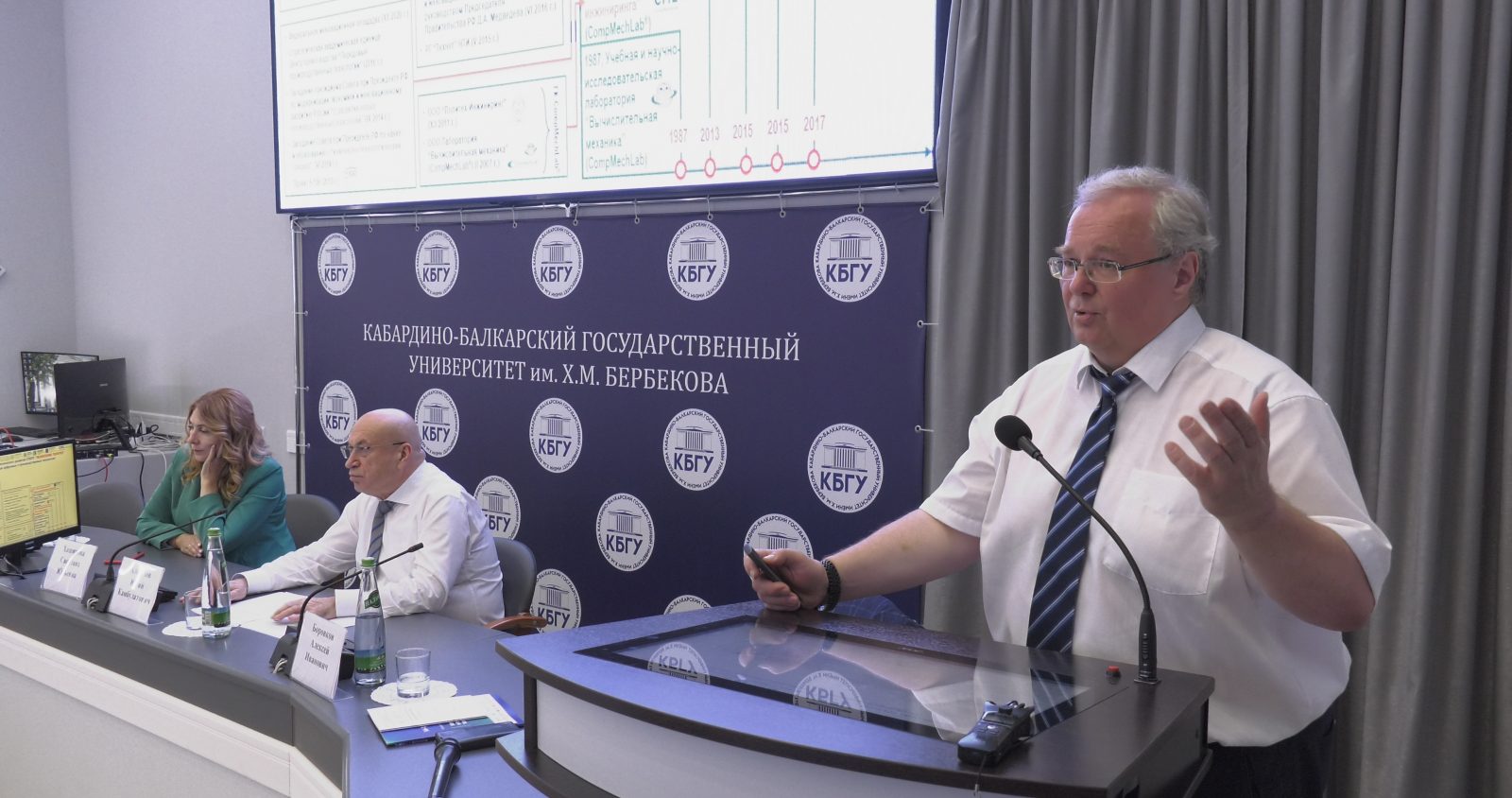 Затем Алексей Иванович выступил перед преподавателями и студентами КБГУ с лекцией на тему «Экосистема технологического развития СПбПУ «Передовые цифровые и производственные технологии». Цифровой инжиниринг на основе технологии цифровых двойников. Модель взаимодействия СПбПУ с высокотехнологичной промышленностью». Проректор СПбПУ по цифровой трансформации поделился опытом ПИШ СПбПУ по применению новаторских подходов для подготовки инженерных кадров.