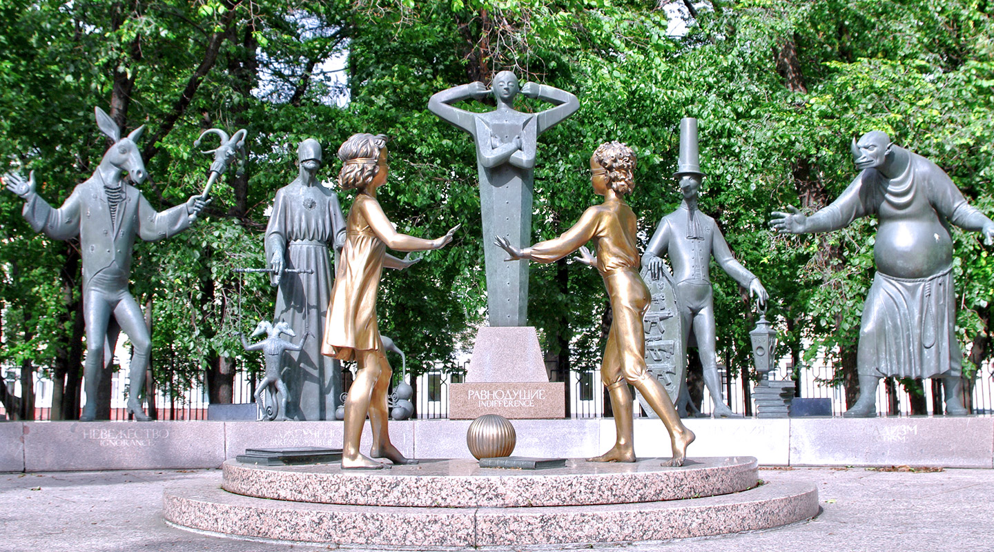 Гуляя в центре Москвы, вы можете оказаться между Фалеевским переулком, улицами Болотной и Серафимовича. Ваше внимание наверняка привлечет необычный памятник, состоящий из пятнадцати фигур, две из них скульптуры мальчика и девочки, а остальные представляют собой существа, олицетворяющие человеческие пороки. Композиция была создана скульптором Михаилом Шемякиным к 800-летию столицы. Заказчиком и автором идеи выступил мэр Москвы Юрий Лужков. Таблички с кратким описанием помогут разобраться с пороками.