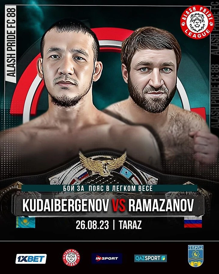 26 августа. ALASH Pride 88. В бою за чемпионский пояс в легком весе сойдутся представитель Тараза Рустем Кудайбергенов с россиянином Низамуддином Рамазановым.