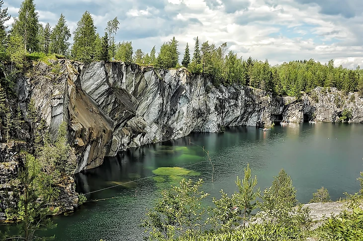 Горный парк Рускеала — одна из самых известных достопримечательностей Карелии. Так вышло, что к созданию парка человек имеет большее отношение, чем природа. На территории парка были карьеры, в которых добывали мрамор для строительства Санкт-Петербурга. После окончания разборок остался большой котлован, который заполнила вода. Время превратило заброшенный карьер в достаточно атмосферное место.
