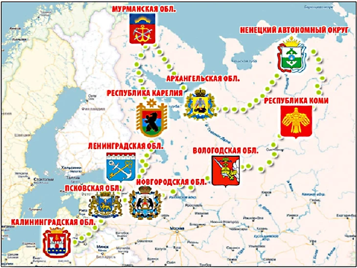 Начинается путешествие по городам Серебряного ожерелья с Северной столицы, а дальше маршрут охватывает Калининград, Псков, Великий Новгород, Вологду, Сыктывкар, Нарьян-Мар, Архангельск, Мурманск, Петрозаводск, города Ленинградской области: Лодейное Поле, Новую Ладогу, Старую Ладогу, Шлиссельбург. Маршруты могут быть самыми разнообразными и тематическими. Можно проехать более коротким путем и познакомиться с северными православными монастырями и храмами. Отдельно можно проехать по дворянским усадьбам. Есть маршрут, который включает так называемые «петровске города». Все они были построены во времена императора Петра Первого. Есть и другие туристические направления.