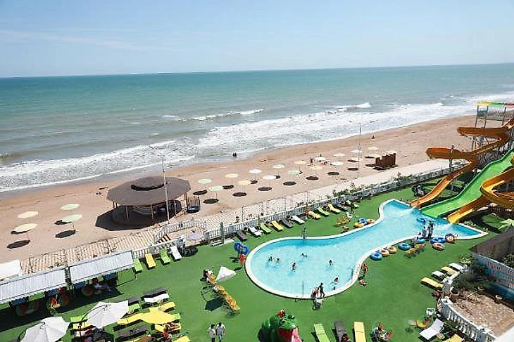 Рядом аквапарк. Пляж гостиницы находится в 10 минутах от центра города. Сюда можно доехать на маршрутных такси, которых достаточно много ходит из центра города. Расписание следует уточнить заранее, воспользовавшись Яндекс картами.