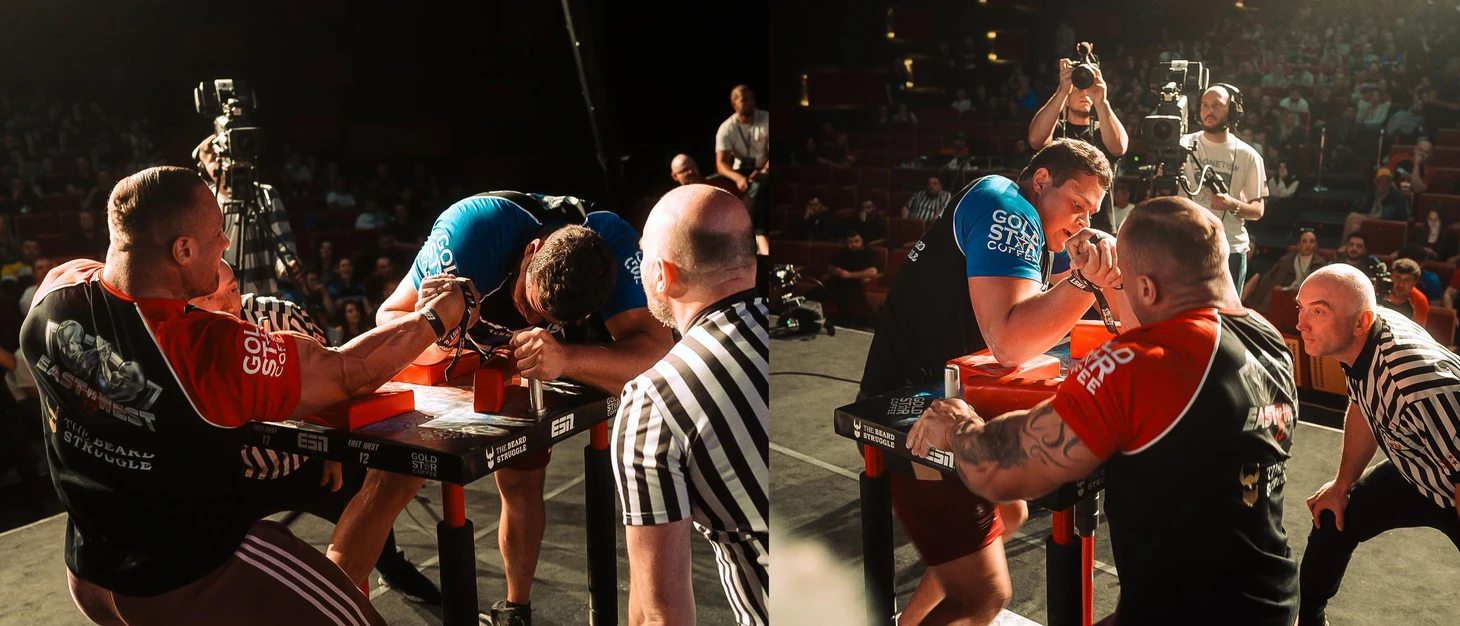 С верхом у Александра не заладилось сразу, и он, чем удивил многих, стал бороться в трицепс. Но Леонидас смог подобрать ключик и к этой неожиданной технике своего соперника и в решающем 5-м раунде вырвал так необходимую ему победу! «Уровень Арконы поразил, особенно последний раунд, когда он смог с первого же раза реализовать нужную для победы технику» - не скрывает удивления Давид Шамей, самый скандальный стронг России и МС по армрестлингу.