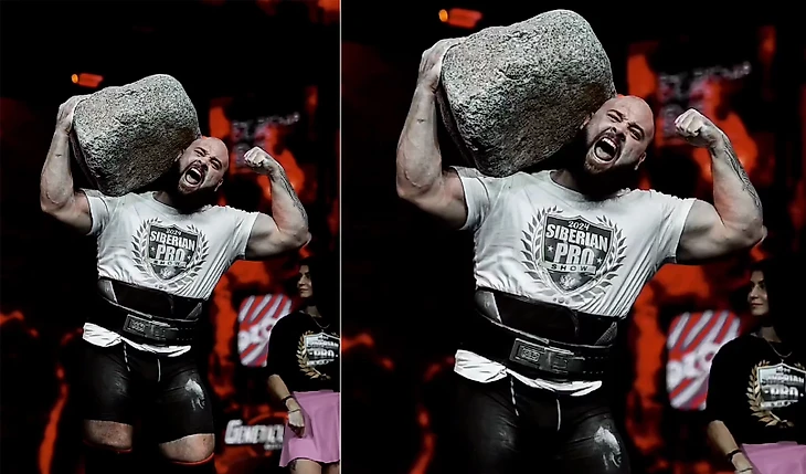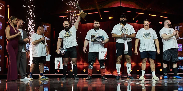 Конкуренция на турнире была настолько сильной что имя победителя определялось в последнем упражнении турнира - подъеме природного камня весом 165 кг! Давид смог поднять этот невероятно тяжелый и неудобный камень на плече три раза и прямо на сцене стал праздновать победу! К титулу Давиду вручили чек на 1.060.000 рублей.