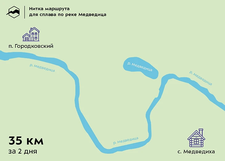 Поход подойдет для выходных дней, поэтому по маршруту будет всего одна стоянка. На середине маршрута есть красочная излучина, рядом находится небольшой ручей. Место идеально подходит для ночлега. Река спокойная, без перекатов и завалов. Оптимальный выбор для знакомства со сплавом по рекам.