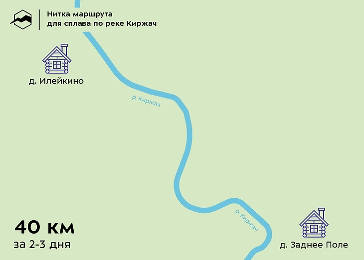 Река Киржач, как и одноименный город, расположены во Владимирской области. До деревни Илейкино, где находится начальная точка маршрута 94 километра от МКАД. Заканчивается маршрут у деревни Заднее Поле. Протяженность маршрута 40 километров, можно пройти за два-три дня. До места старта можно заказать трансфер из Александрова или Орехово-Зуево. Если добираться своим ходом, то сперва необходимо с Ярославского вокзала добраться до Александрова, там пересесть на электричку в сторону Орехово-Зуево и выйти на станции Илейкино.