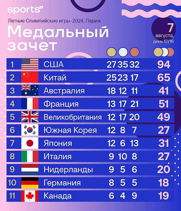🥇 США 🥈 Новая Зеландия 🥉 Великобритания