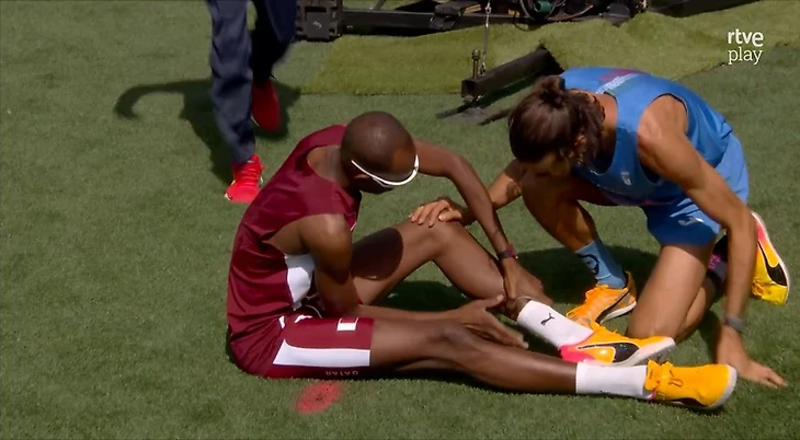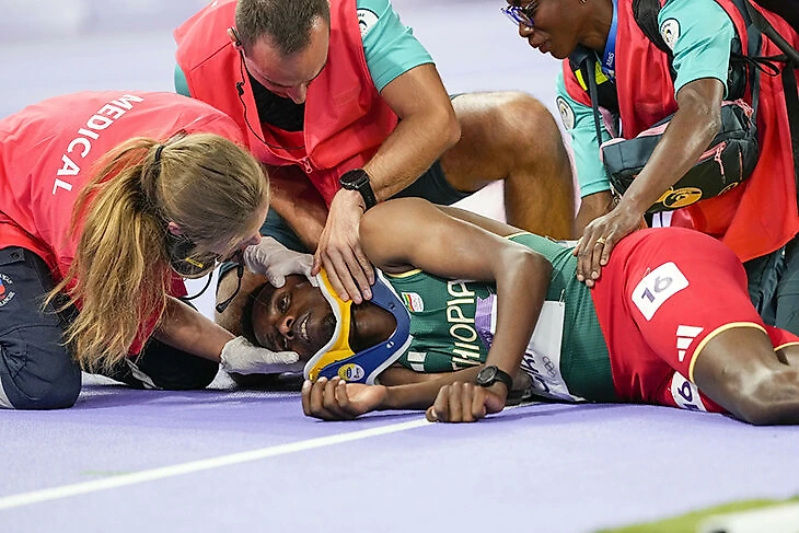 🏥 Происшествием дня стало падение эфиопа Ламехи Гирмы: шел среди лидеров в беге на 3000 метров с препятствиями, во время ускорения на последнем круге зацепился за барьер ногой и жутко упал головой вниз. Рекордсмен мира на этой дистанции на несколько минут потерял сознание, бился в конвульсиях и закончил вечер вместо пьедестала – в больнице на углубленном обследовании