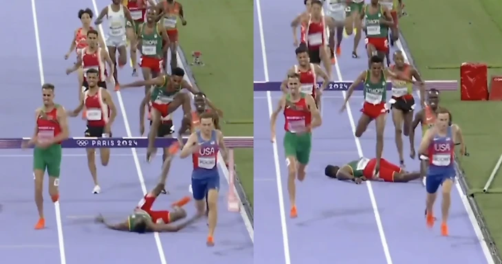 Жесть в беге на 3000м: один из лидеров споткнулся о препятствие и улетел головой вниз. Увезли со стадиона на носилках