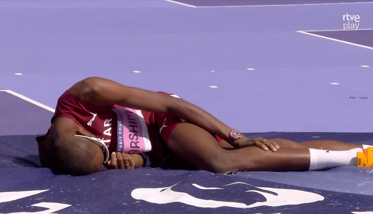 Это квалификация прыжков в высоту началась, мы собирались там особенно следить за страдальцем Джанмарко Тамбери, но больше проблем у другого олимпийского чемпиона – Мутаза Баршима, с которым они разделили золото Токио.