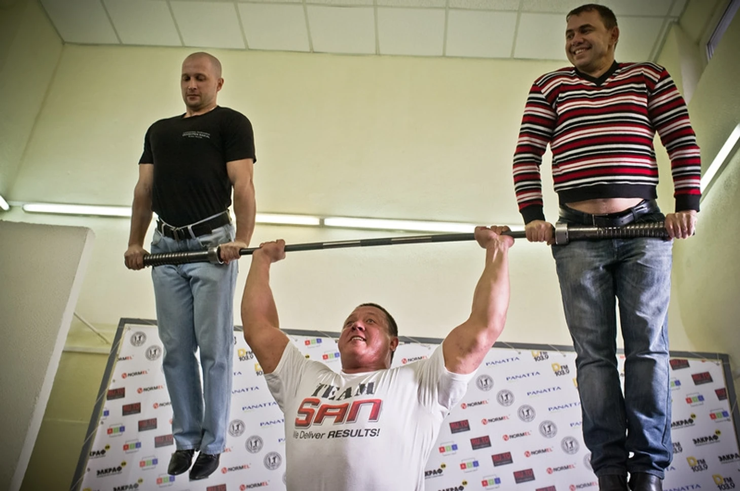 «У Кокляева с Артемьевым просто на вынос программа! Там только они такие упражнения смогут сделать!» - заинтриговал нас Александр Шулдяков, один из организаторов Genetic Battle. Заруба будет включать в себя три упражнения. «Первый раунд. Они становятся фейс ту фейс. Миша, допустим, первый начинает. Делает тягу 300 кг, рядом стоят фермера в 320 кг, он относит их Павлу и тот делает тягу уже два раза и несет фермера обратно и так пока кто-то первый «не умрет» - рассказал об упражнений Денис Вовк. Вторым упражнением будет коромысло с начальным весом в 250 кг. Третье упражнение - Фрисби, где в качестве «тарелки» будет 25-килограммовый блин!