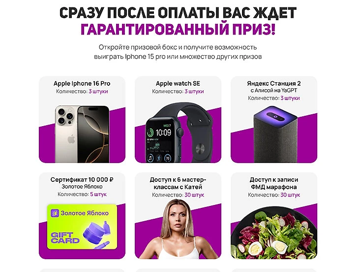 Помимо обещаний быстрого похудения, при продвижении марафонов в ход идут материальные бонусы. Тем, кто избавится от наибольшего количества лишних килограммов, обещают подарить деньги, гаджеты, подарочные сертификаты и даже машины.