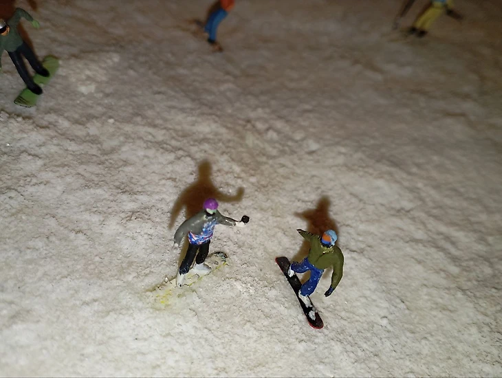 Следующими в дело вступили сноубордисты. В финале два представителя компаний - пищевой промышленности финишировали наравне, но участник по правой стартовой позиции был на долю секунды быстрее.