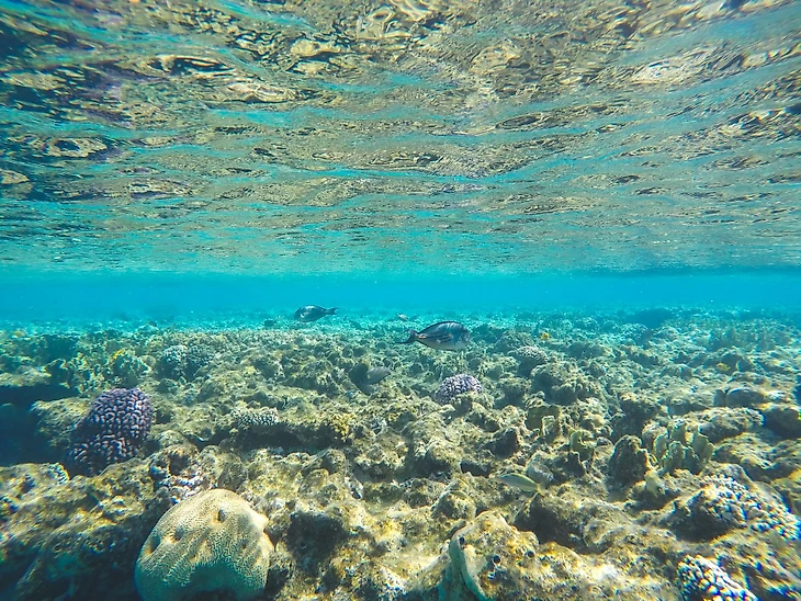 Носите защитную обувь, такую как коралловые тапочки, чтобы минимизировать риск травмирования стоп острыми предметами, такими как кораллы, морские ежи или камень.