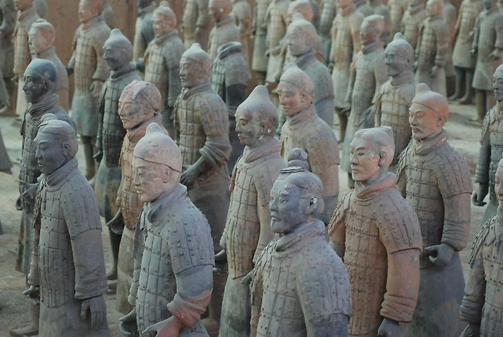 Одна из самых главных достопримечательностей Китая, Терракотовая армия, была обнаружена совершенно случайно фермерами в 1974 году во время рытья колодца. Изначально все фигуры были раскрашены яркими красками, но, к сожалению, пигмент быстро осыпался и выцвел при контакте с воздухом после тысячелетий нахождения под землей. Каждая фигура уникальна, и считается, что они были созданы по образу реальных воинов.