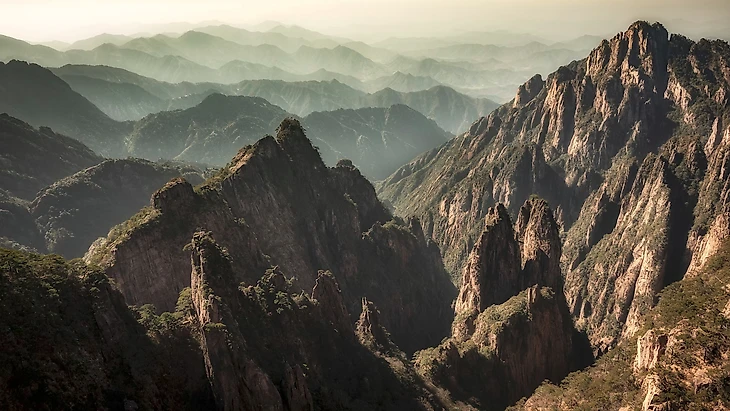 Горы Хуаншань (Желтые горы): Живописный горный массив, известный своими гранитными пиками, причудливыми соснами, облачными морями, горячими источниками. Вдохновение для многих китайских художников, поэтов. Поездка в Хуаншань – это погружение в мир тумана, легенд, невероятных пейзажей. Эти горы, окутанные дымкой, создают ощущение нереальности, словно вы попадаете в сказочный мир традиционных китайских свитков.