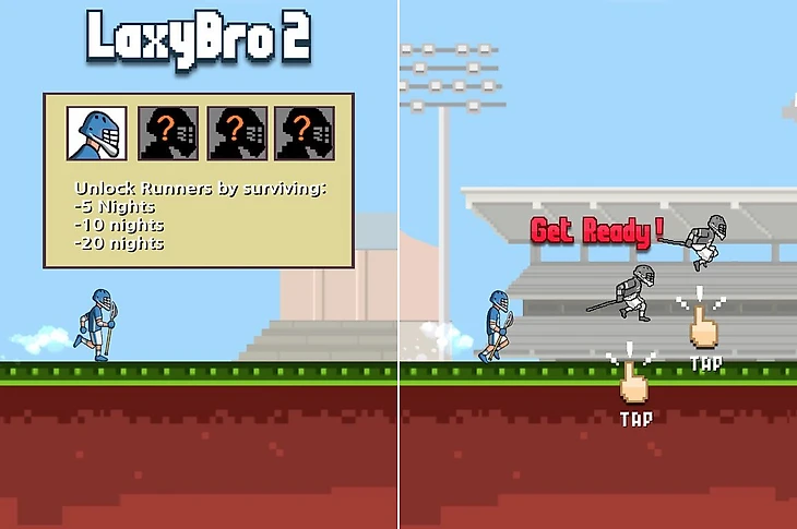 «Нажмите, чтобы прыгнуть! Дважды нажмите, чтобы прыгнуть дважды! Laxy Bro 2 – бесконечный раннер в лакроссе! Разблокируйте четырех уникальных игроков в лакросс! Лидер мирового рейтинга!»