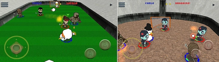 «Lacrosse Arena — это динамичная спортивная игра 3 на 3 для игроков, ищущих больших хитов и динамичных действий! Пройдите сезонный режим и откройте всех 30 сумасшедших персонажей! Разблокируемые персонажи включают тыквенную голову, эльфа, зомби, эвока, снеговика, Санту и многих других!»