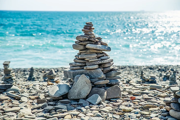 На острове Русском есть несколько диких и благоустроенных пляжей. Одним из наиболее популярных считается пляж на мысе Вятлина. Его протяженность около километра, поверхность галечная, причем на берегу везде находится множество маленьких пирамидок из камней. Туристы едут сюда не столько загорать и купаться, сколько за атмосферными фото и видео. Здесь отличный вид на Японское море во Владивостоке, есть возможность заняться дайвингом и подводной охотой. Бухту окружают скалы, поэтому здесь нет ветров, и море практически всегда спокойное.