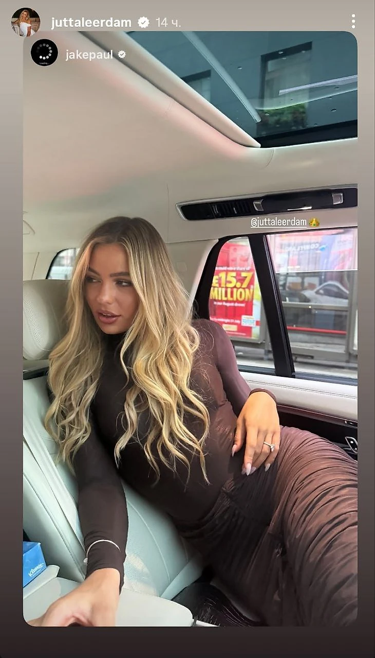 Посмотреть поединок собралось множество звездных гостей, в том числе и Джейк Пол. Особое внимание привлекла и его невеста Ютта Лердам. Конькобежка выбрала смелое полупрозрачное платье, отправившись на «Уэмбли».