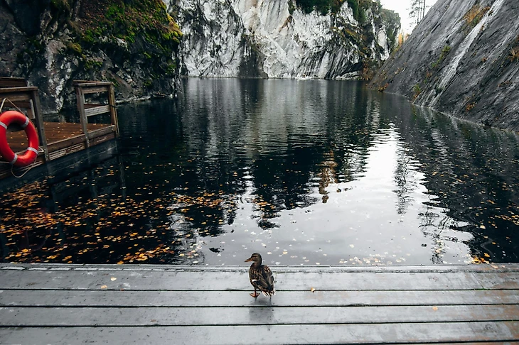 Горный парк «Рускеала». Там есть мраморный каньон, подземное озеро, троллей (zip-line) над пропастью. Осенью здесь особенно живописно.