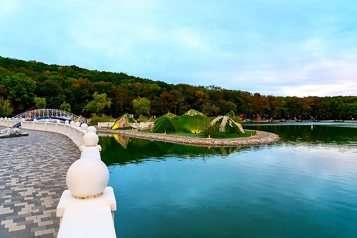На озере расположен остров Гулливеров с миниатюрными копиями гор и достопримечательностей города. Есть фонтан с подсветкой, лодочная станция для катамаранов и сапсерфинга, детская игровая площадка и мелководная зона для купания.
