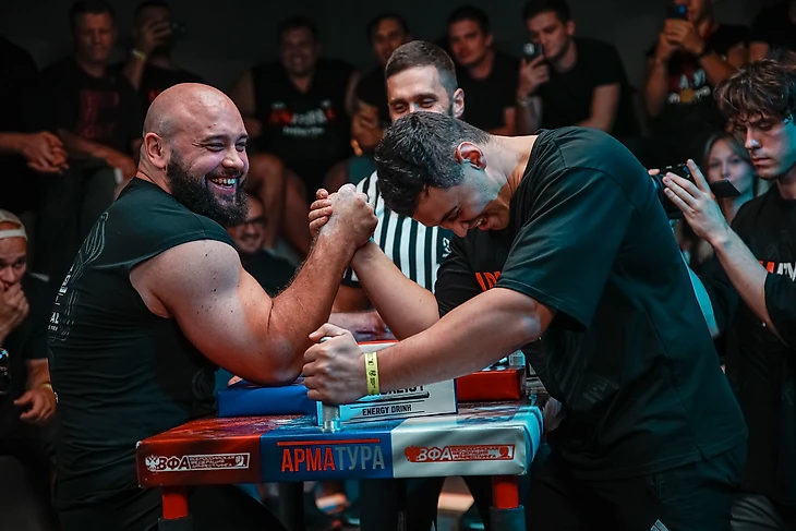 «Мне здесь проигрывать нельзя. Настрой очень серьёзный. Если получится Никиту пройти, то это реванш с Валерой. Для меня принципиально», — поделился мыслями о предстоящем армфайте вологодский тяжеловес и добавил, что в шоке от масштаба предстоящего турнира: «Это стадионный турнир, Кинопоиск и так далее. То есть действительно АРМАТУРА шагнула намного-много вперёд в плане развития!»