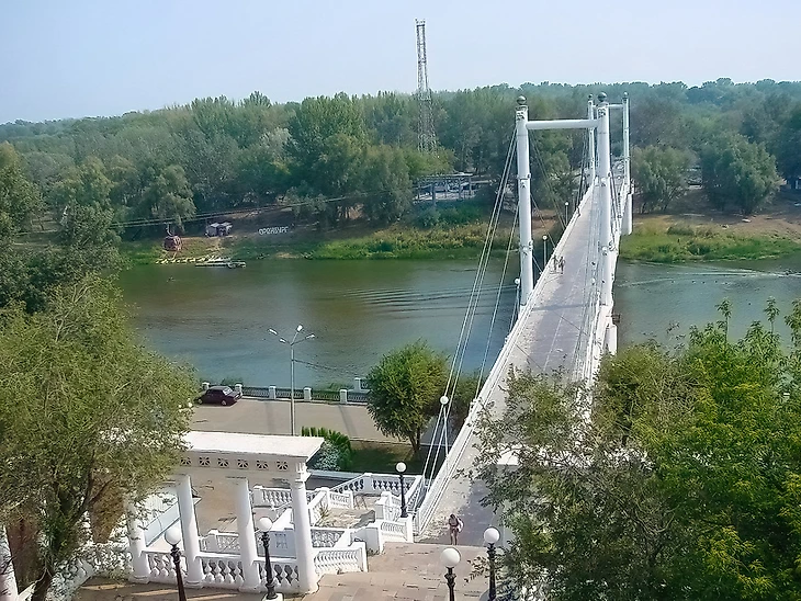 Адрес: Набережная реки Урал, вход свободный. Мост идеален для утренних и вечерних прогулок, особенно в солнечную погоду.
