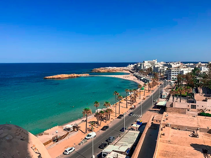 • Восточное побережье (Сусс, Монастир, Махдия): этот регион более сухой и солнечный. Температуры комфортные: +25°C...+27°C днем и +16°C...+18°C ночью. Вода чистая и спокойная, купальный сезон в разгаре. Ветер ощущается меньше, чем на севере.
