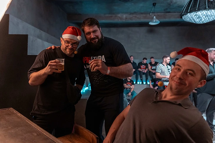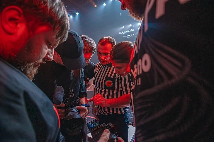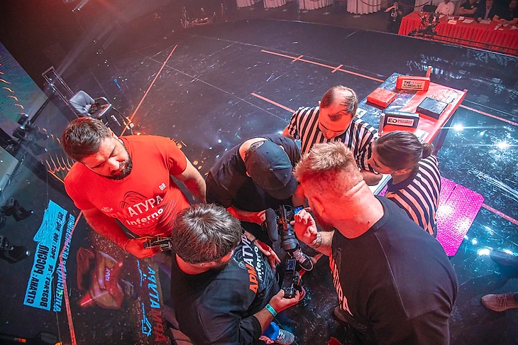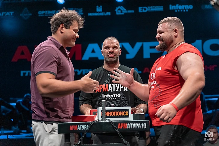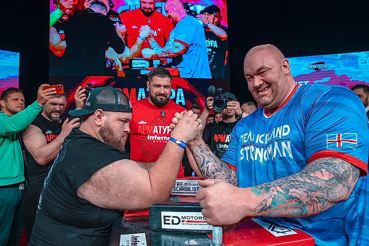 Самым звёздным «закулисным» поединком стала импровизированная схватка между Василием Камоцким и Хафтором Бьёрнссоном на «АРМАТУРЕ‑8». Изначально Хафтора попросили просто подняться на сцену, чтобы сделать фото за столом со звездой POWER SLAP. Но вы же понимаете: раз ты встал к столу, надо же понять, кто тут самый самый!