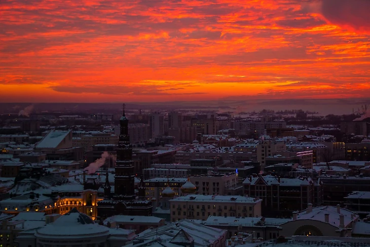 Для тех, кто хочет охватить взглядом практически всю зимнюю Казань, отличным решением станет посещение смотровой площадки в центре семьи «Казан». Отсюда развернется великолепная панорама: застывшая подо льдом Казанка, переливающийся тысячами огней мост «Миллениум» и неповторимый городской ландшафт, сформированный куполами церквей и мечетей. Лучшим временем для посещения будет промежуток с 16:00-16:30, когда начинается закат солнца и включается подсветка зданий.