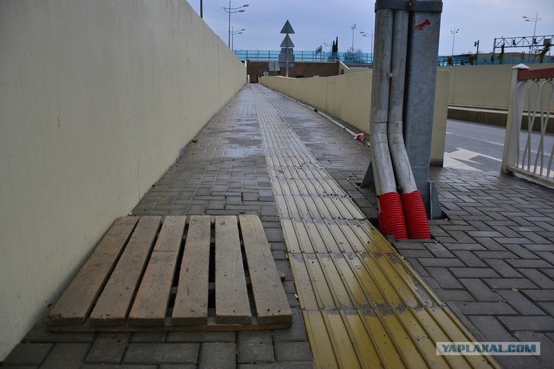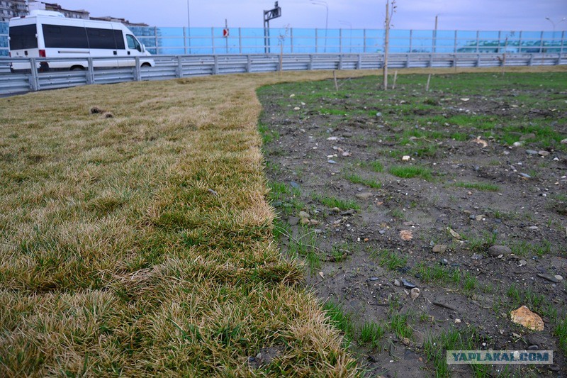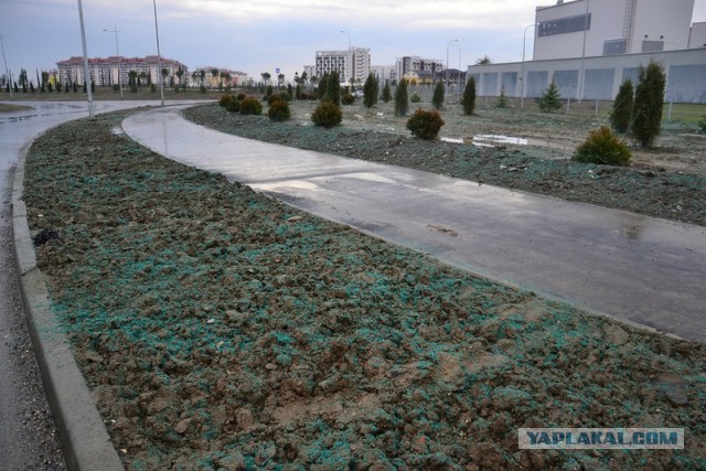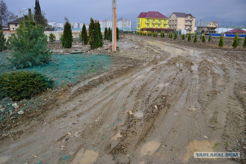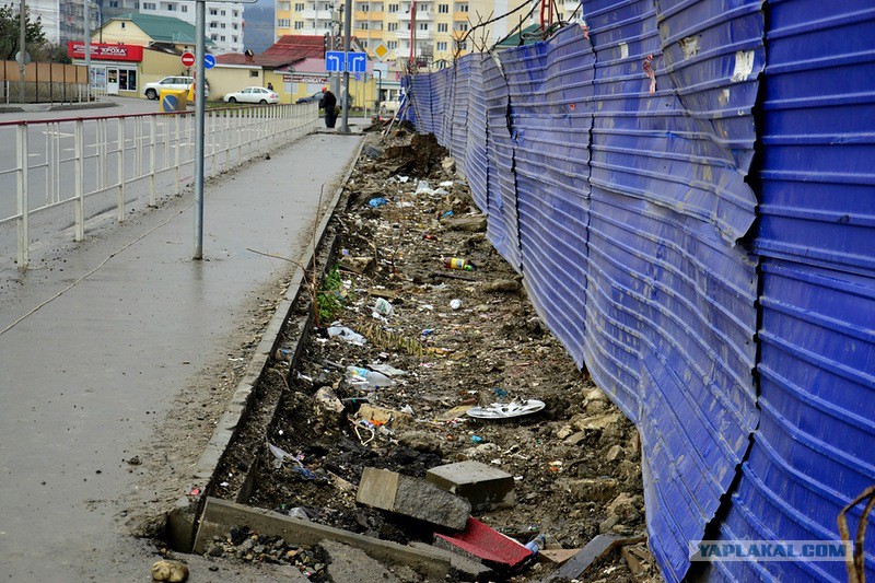 К сожалению, в России многое делается через задницу и Олимпиада в Сочи – тому не исключение.Сегодня, за 15 дней до начала Игр, прогулялся по Имеретинской низменности – именно там находится Олимпийский парк, который на официальных картинках выглядит просто замечательно, но реальность куда более прозаичная: тротуары, уложенные к Олимпиаде, уже разваливаются, стройке и бесконечным ремонтам в прибрежном кластере – нет конца и края, а строительный мусор и мусор вполне бытовой – обычное явление для Имеретинской низменности, так как в примыкающей к Олимпийскому парку территории нет мусорных контейнеров и причина тому – присядьте, пожалуйста – обеспечение безопасности.В общем, добро пожаловать в зону международного олимпийского гостеприимства…