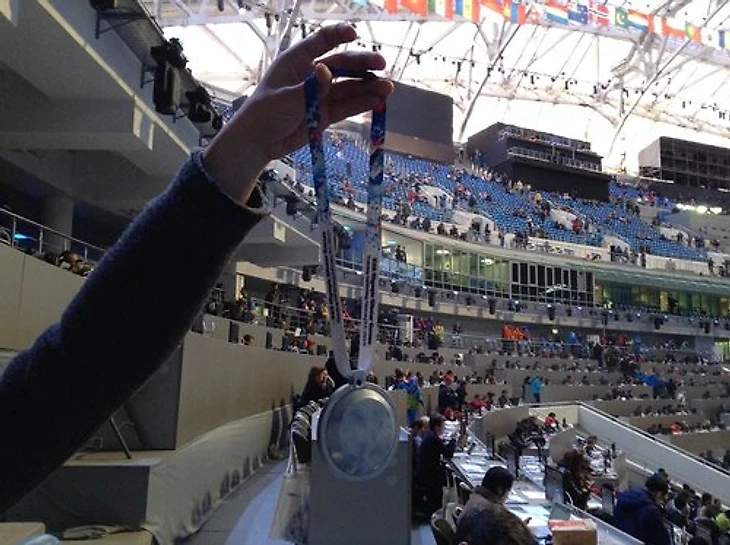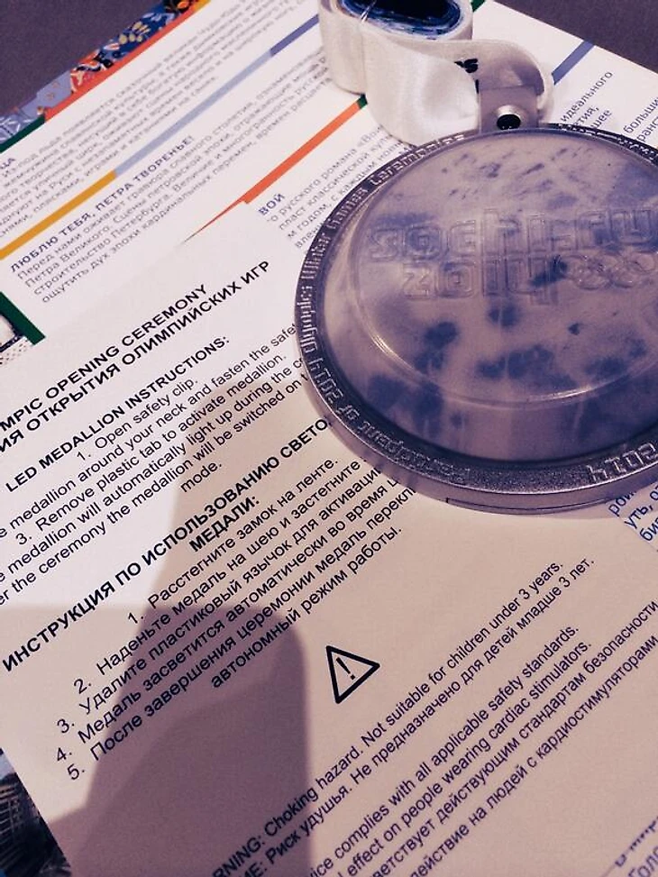 Каждого зрителя на трибунах ждет индивидуальный мешочек, в котором лежат большой гид по церемонии и светодиодная медаль, которая автоматически загорится у всех зрителей. После церемонии медаль переключится в автономный режим.