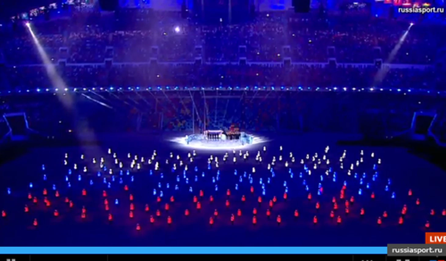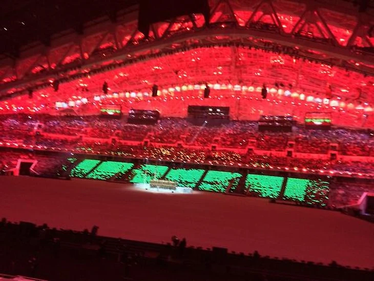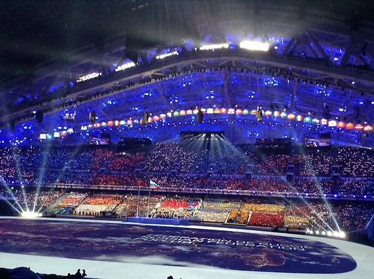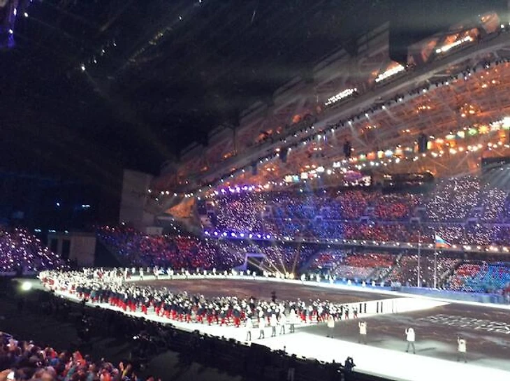 18.28 Официальный твиттер «Сочи-2014» сообщает, что трансляцию церемонии открытия будут смотреть 3 миллиарда человек по всему миру. Здорово.
