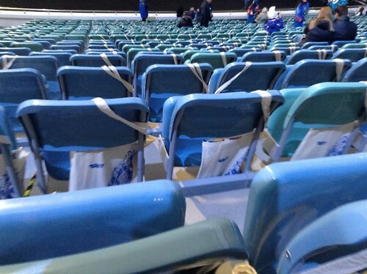 И странновато выглядят пустые кресла за спинами спортсменов. Туда наверняка сядут атлеты, но выглядит не очень впечатляюще.