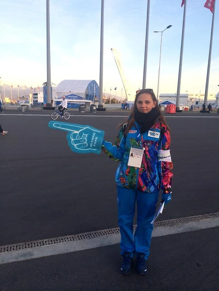 18.32 Тот, кто сейчас подходит к Олимпийскому парку, где расположен стадион «Фишт», видит вот таких волонтеров с указателями на руках.